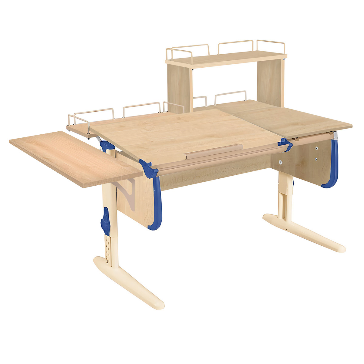 Парта Дэми СУТ-25-02Д1 120см раздельная с двумя приставками и надстройкой клен/синий/белый каркас